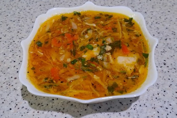 Борщ из свиной лопатки с красным сладким перцем и петрушкой