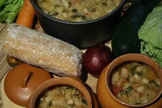 ШАГ 4 Залить содержимое сотейника куриным или овощным бульоном, или даже водой, лишь слегка покрыв овощи жидкостью, и варить в течение 1,5 часов, поддерживая не интенсивное кипение.