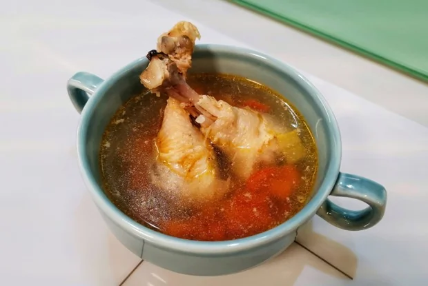 ШАГ 10 Как только бульон закипит, снять пену и убавить огонь до чуть ниже среднего.