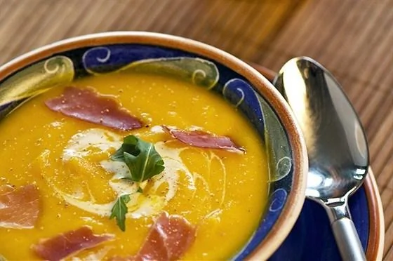 Суп из черной фасоли и тыквы с ветчиной и шерри