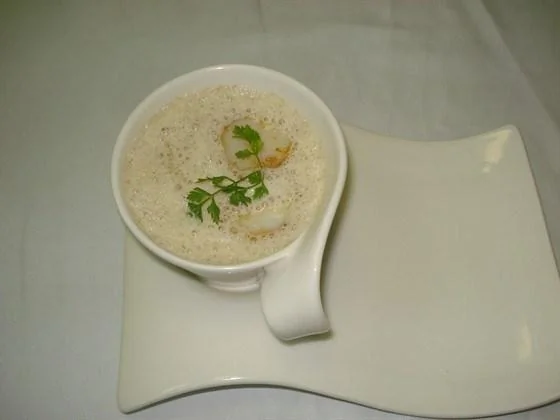 ШАГ 4 Нарезать гребешки большими ломтиками и обжарить на масле грецкого ореха на сильном огне до золотой корочки, добавить соль и перец. Вылить валюте в тарелку или пиалу, добавить гребешки, сверху полить маслом грецкого ореха.