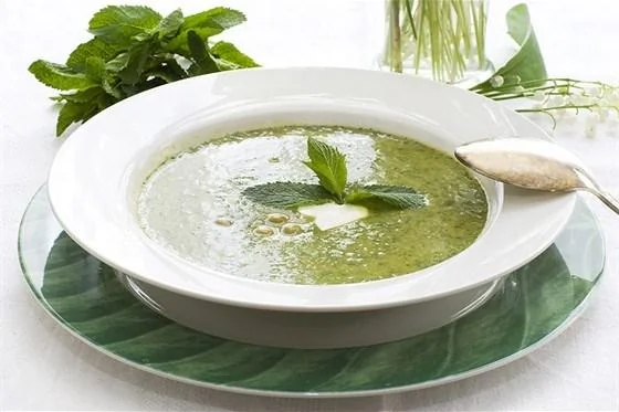 Зеленый крем-суп из шпината и мяты с паприковым маслом