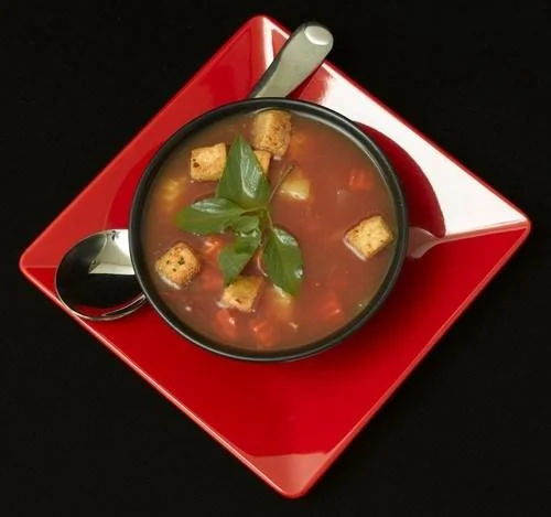 Суп со шпиком, помидорами и чесноком