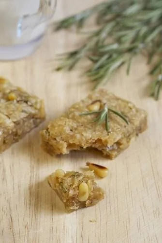 ШАГ 2 Раскатать тесто в пласт и выложить на противень. Посыпать сверху кедровыми орешками и слегка вдавить их в тесто.
