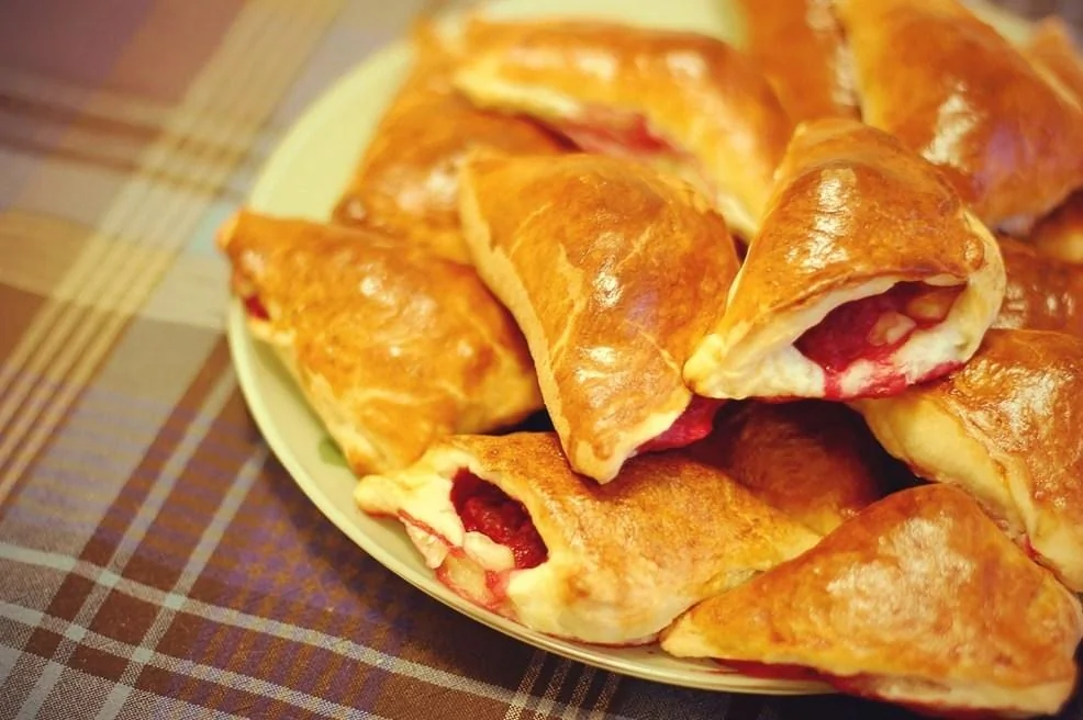 Французские пирожки из слоеного теста с мягким сыром и малиной