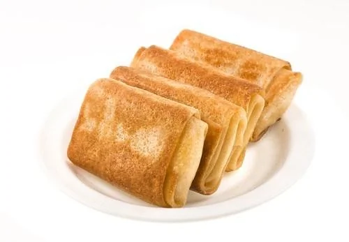 ШАГ 3 Затем блинчики разложить на доске подрумяненной стороной кверху и на каждый блинчик положить столовую ложку творожной, яблочной начинки или столовую ложку варенья, густого повидла. Блинчики завернуть в виде конверта и обжарить с обеих сторон на сковороде с маслом.