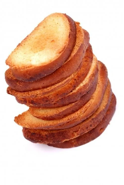 ШАГ 4 Охлажденные батоны нарезать на ломтики, разложить на лист, сбрызнуть молоком, посыпать сверху сахаром, рубленым миндалем или сахаром, смешанным с миндалем, и поставить подсушить в нежаркий духовой шкаф.