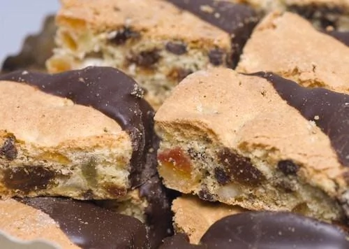 ШАГ 7 Шоколадную помадку растопить на водяной бане. Окунать одним кончиком печенье в помадку и остудить.