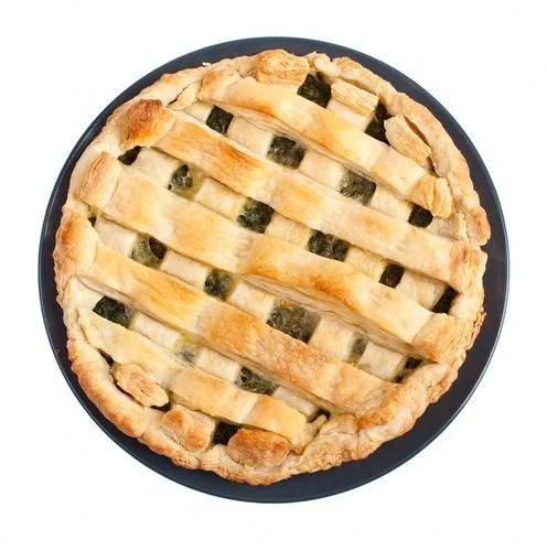 ШАГ 5 Посыпьте столешницу мукой, разделите тесто на две части и раскатайте коржи. Один положите на дно круглой формы и проткните вилкой. Сверху положите начинку и накройте другим слоем теста. Защипайте края.