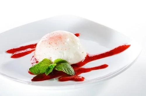 ШАГ 4 Поставьте крем в ледяную воду и взбивайте до полного остывания. Затем введите взбитые белки, перемешивая крем снизу вверх. Крем разложите по бокалам или вазочкам.