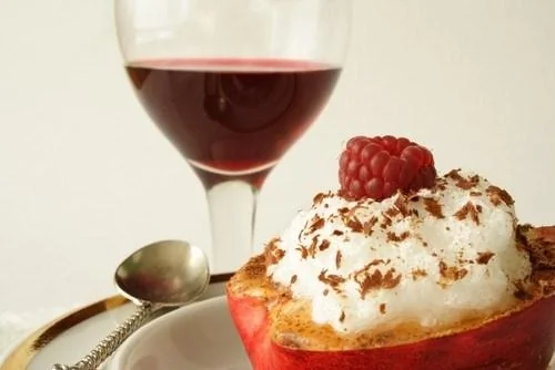ШАГ 4 Выпустите крем из кондитерского мешка на яблоки и поставьте в духовку на 1 минуту.