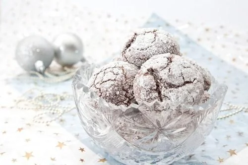 ШАГ 4 Насыпьте пудру на тарелку. Выньте противень из духовки и оставьте на 2-3 минуты. Обваляйте печенье в пудре и снова выложите на противень. Поставьте в духовку на 1 минуту. Охладите на противне.