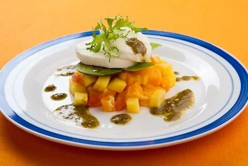 ШАГ 1 В миске смешайте сегменты апельсинов, нарезанные тропические фрукты, очищенную и нарезанную небольшими кусочками дыню, мелко нарезанную мяту и сок лайма. Хорошо перемешайте и отправьте в холодильник на 1 час.