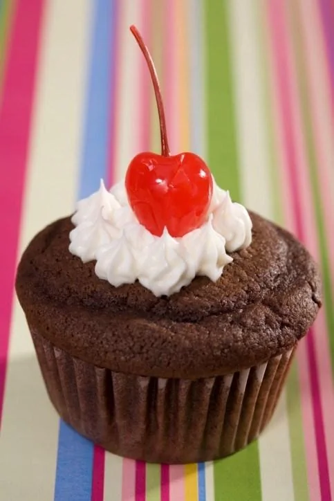 Шоколадные капкейки из рутбира с ванильными шариками и взбитыми сливками