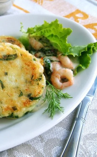 Ингредиенты для приготовления Салат с креветками и блинчиками из пармезана: