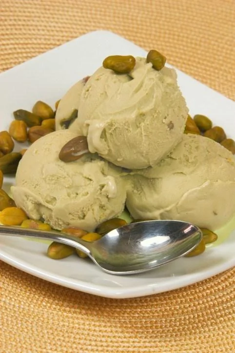 ШАГ 4 Готовое мороженое вынуть из формы, разложить по розеткам и посыпать рублеными фисташками.