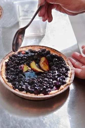 Ингредиенты для приготовления Открытый пирог с черникой и персиками: