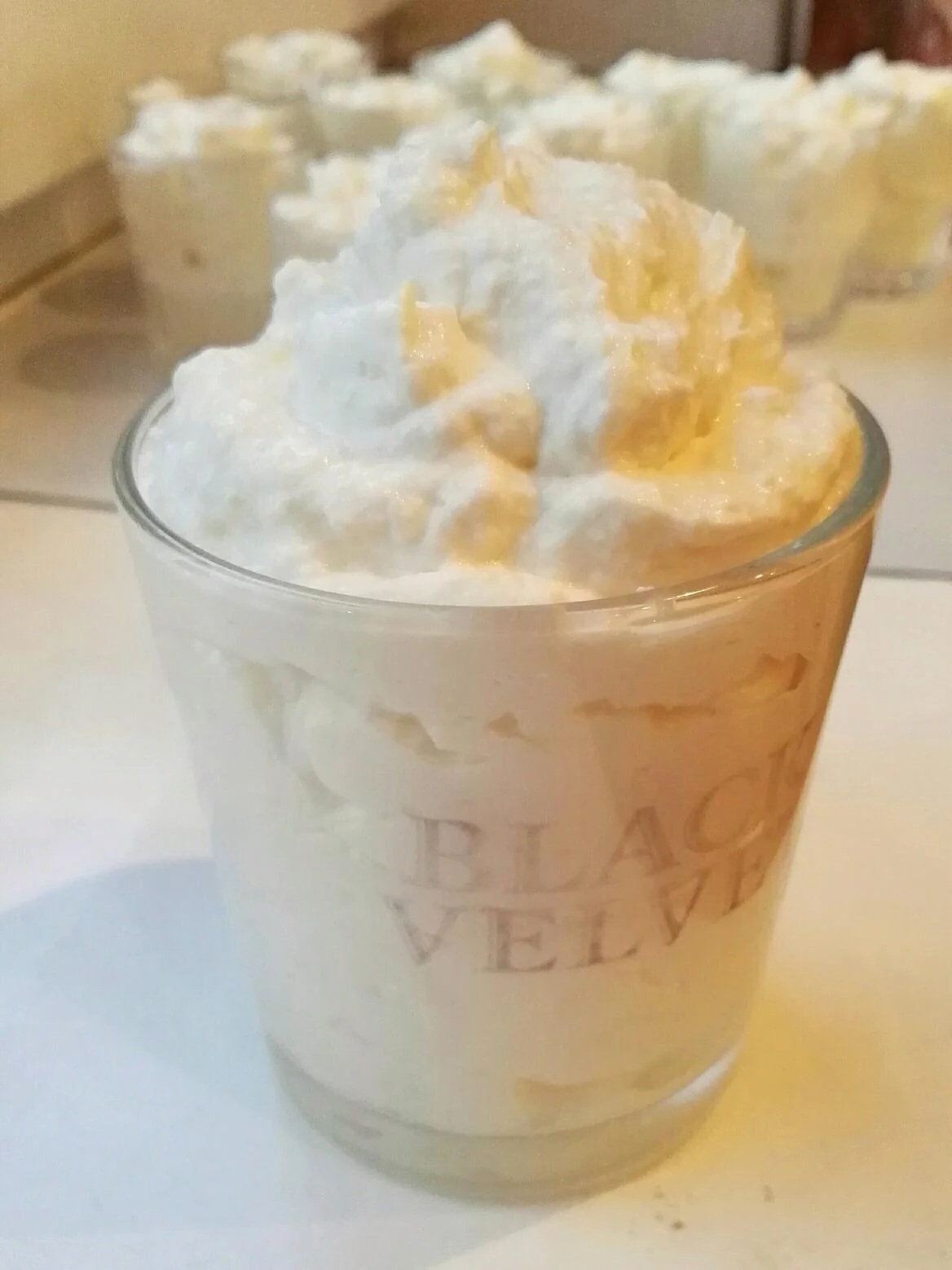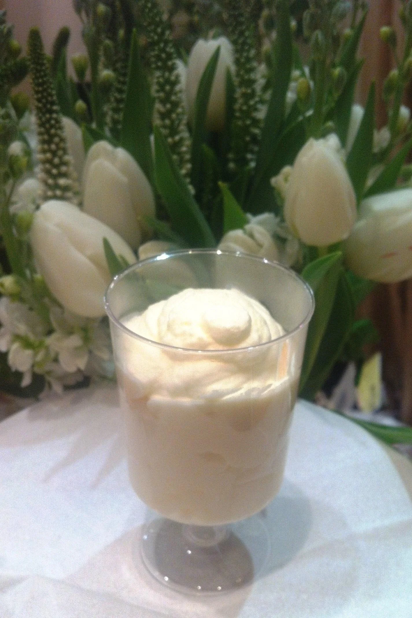 ШАГ 2 В другой миске взбить белки в гомогенную белую плотную массу. Аккуратно вмешать — не венчиком, а лопаткой — белки в сливки. Разложить результат по стаканам и поставить в холодильник на пятнадцать минут.