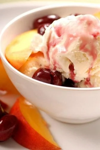 Персики с мороженым в ягодном соусе
