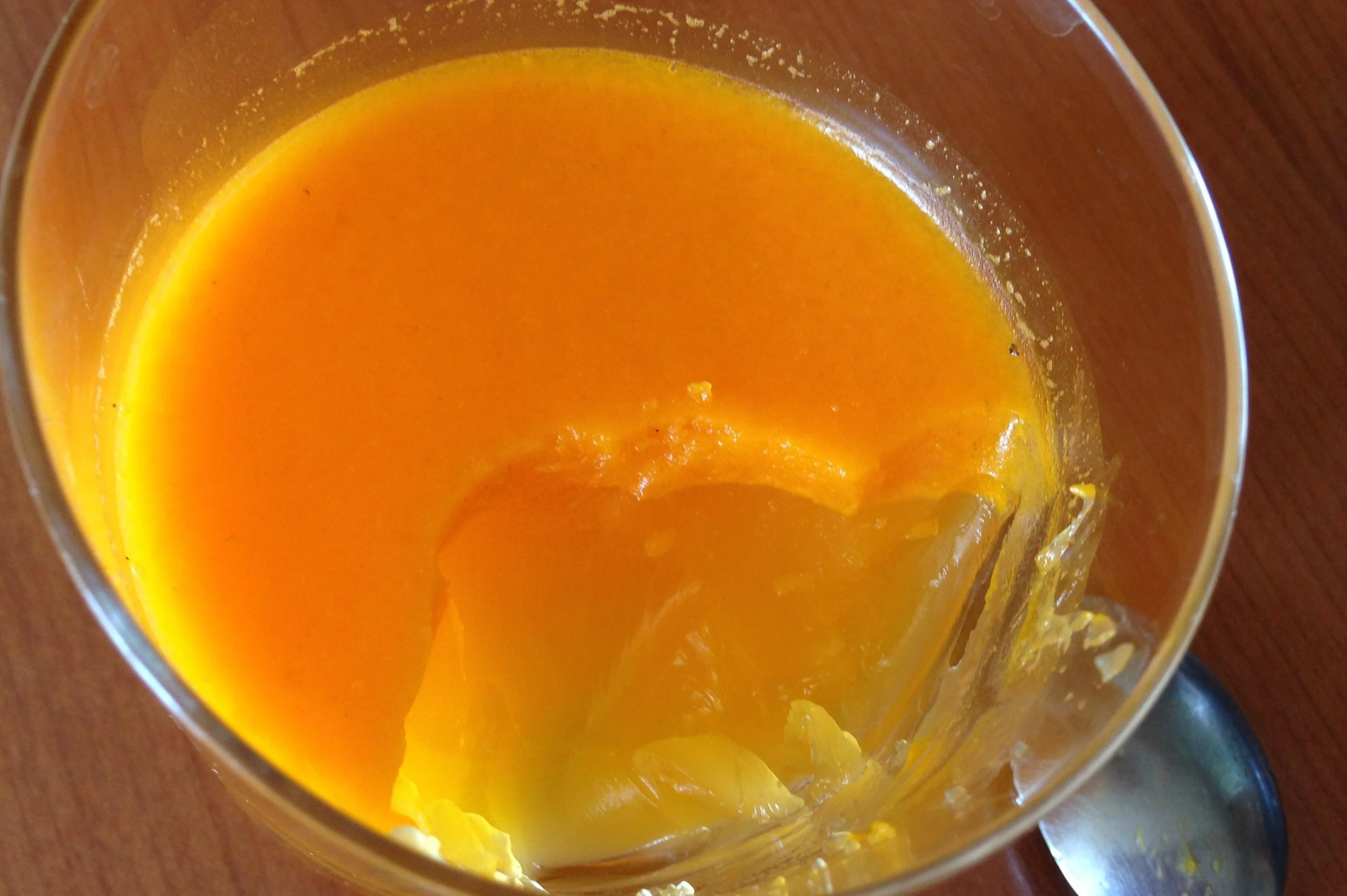 ШАГ 2 Отжатую мякоть залейте водой, доведите до кипения и процедите. В отваре разведите сахар и предварительно замоченный желатин. Помешивая, доведите до кипения. Добавьте облепиховый сок, охладите и взбейте. Массу разлейте по чашкам и охладите.