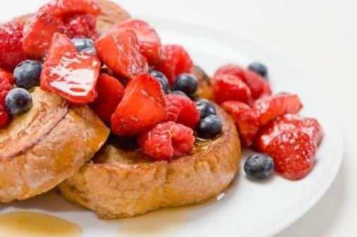 ШАГ 7 Порежьте хлеб на куски и подавайте, украсив сверху ягодами.