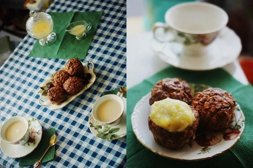 Пшеничная мука Сахар Тыквенное пюре Овсяные хлопья Яблочное пюре Ванильный экстракт Яйцо куриное Соль Молотая корица Специи для тыквенного пирога Сода Выпечка и десерты Европейская кухня Низкокалорийная еда Печенье