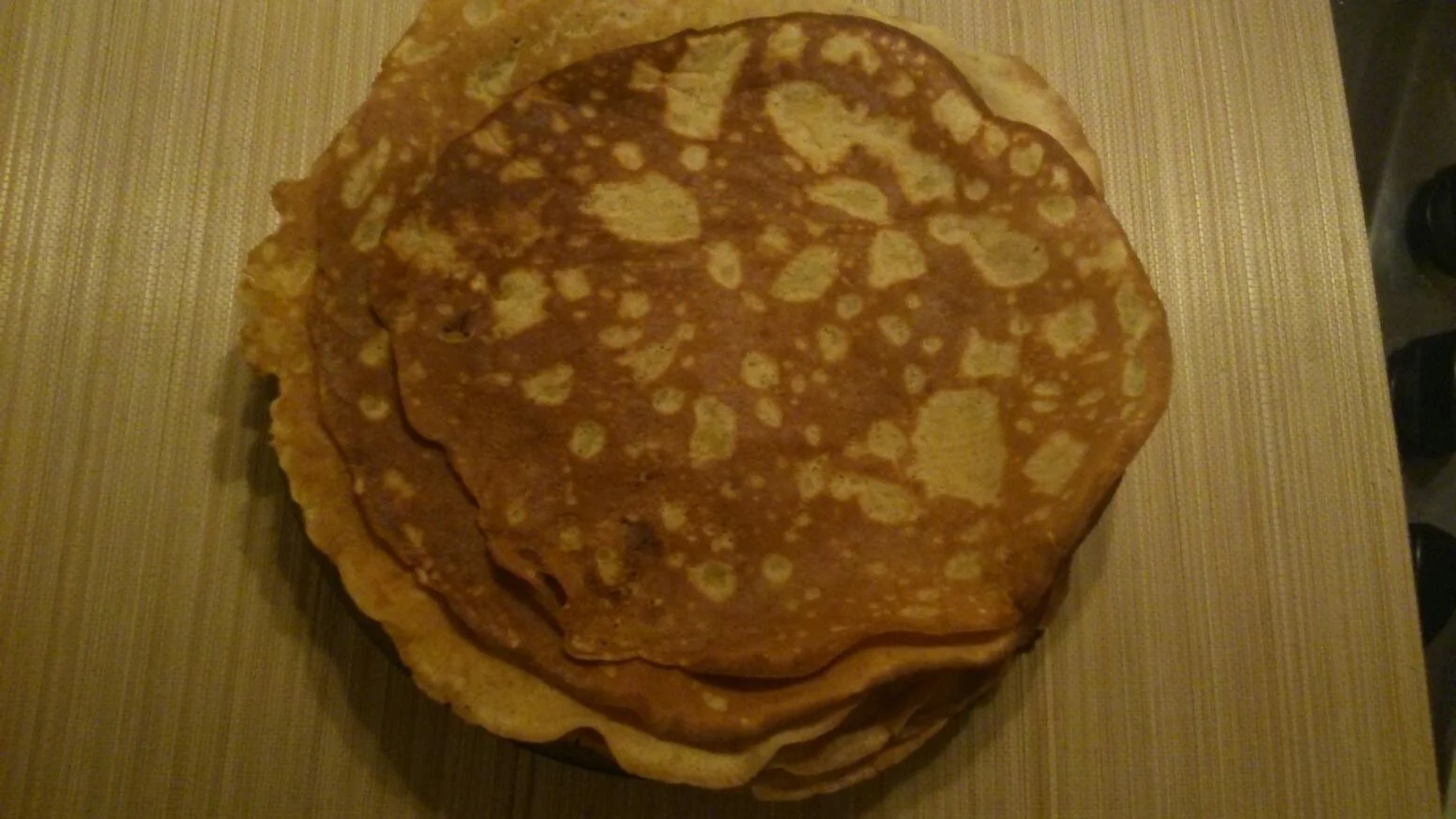 ШАГ 4 В сковороде разогрейте небольшое количество растительного масла. Налейте примерно 0,25 стакана теста на сковороду, распределите по всей поверхности и жарьте 2–3 минуты до румяного цвета. Затем переверните и жарьте еще 1–2 минуты. Повторите тоже самое с остальным тестом.