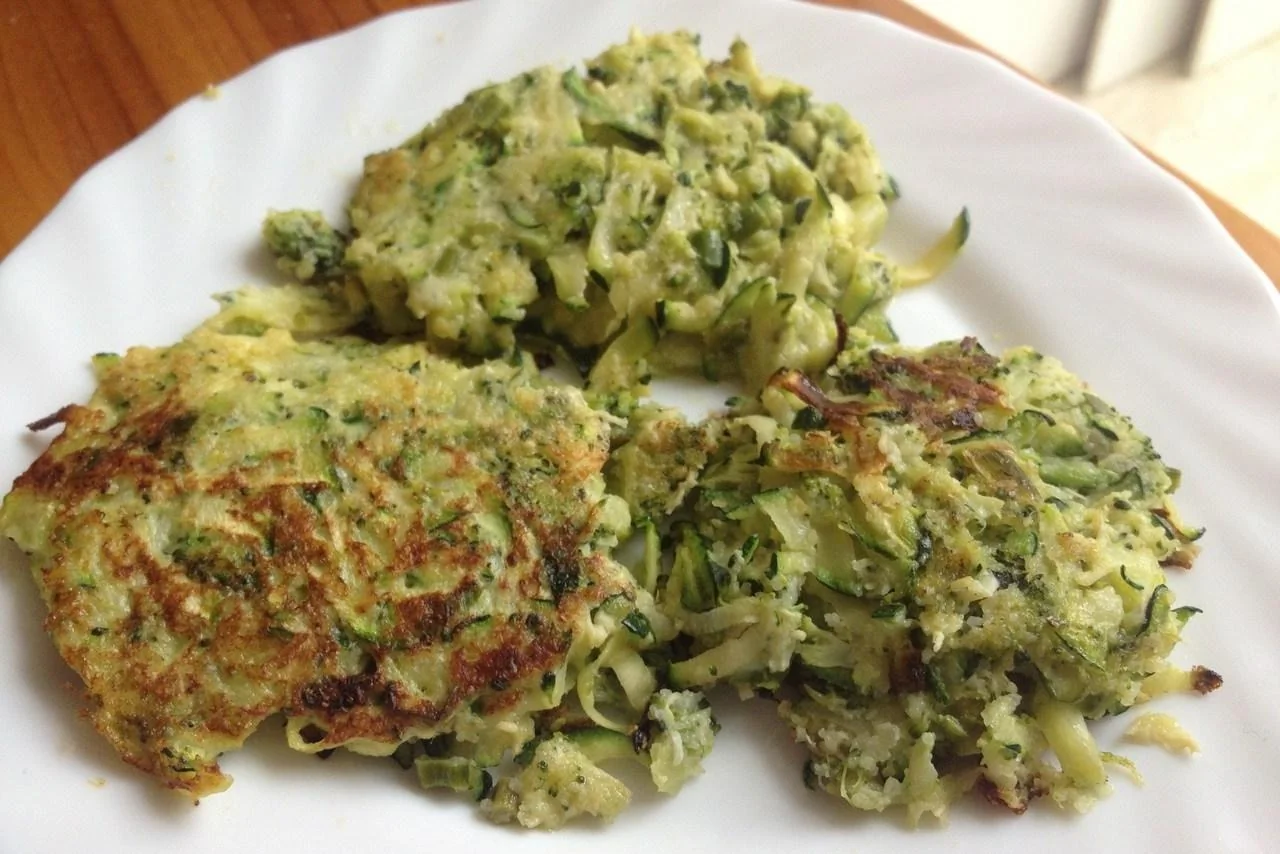 Оладьи из зеленых овощей и креветок