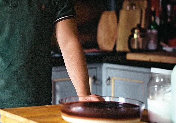 ШАГ 4 На полностью застывший первый белый слой вылить хорошо охлажденный шоколадный или кофейный и оставить застывать.