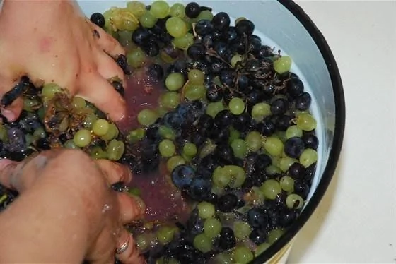 ШАГ 2 Или же второй вариант (так готовят настоящие грузины): виноград положить в кастрюлю, накрыть крышкой и оставить на день–два, чтобы слегка побродил, далее выжать сок.
