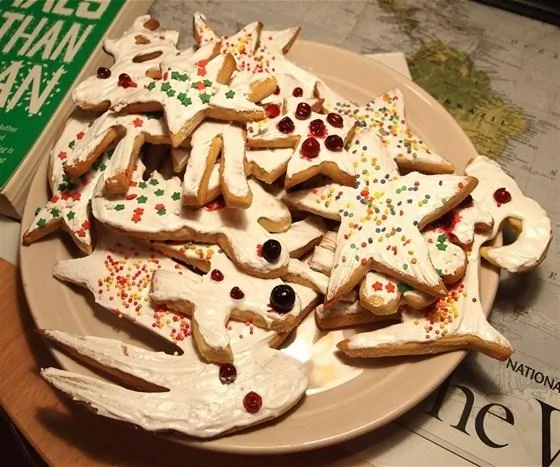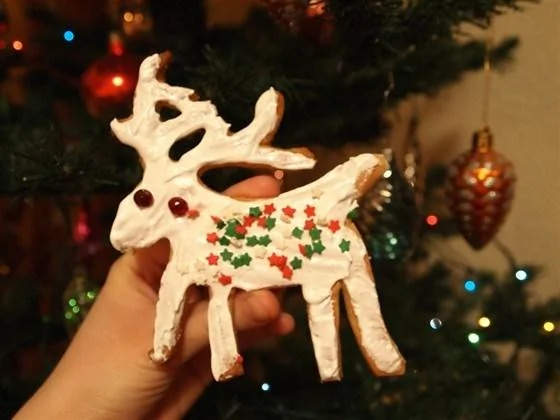 ШАГ 7 Сделать глазурь: два белка смешать с сахарной пудрой. Достать козули и, пока они горячие, кистью обмазать их глазурью. Можно еще сделать козулям глаза — например, из сушеных или свежих ягод.