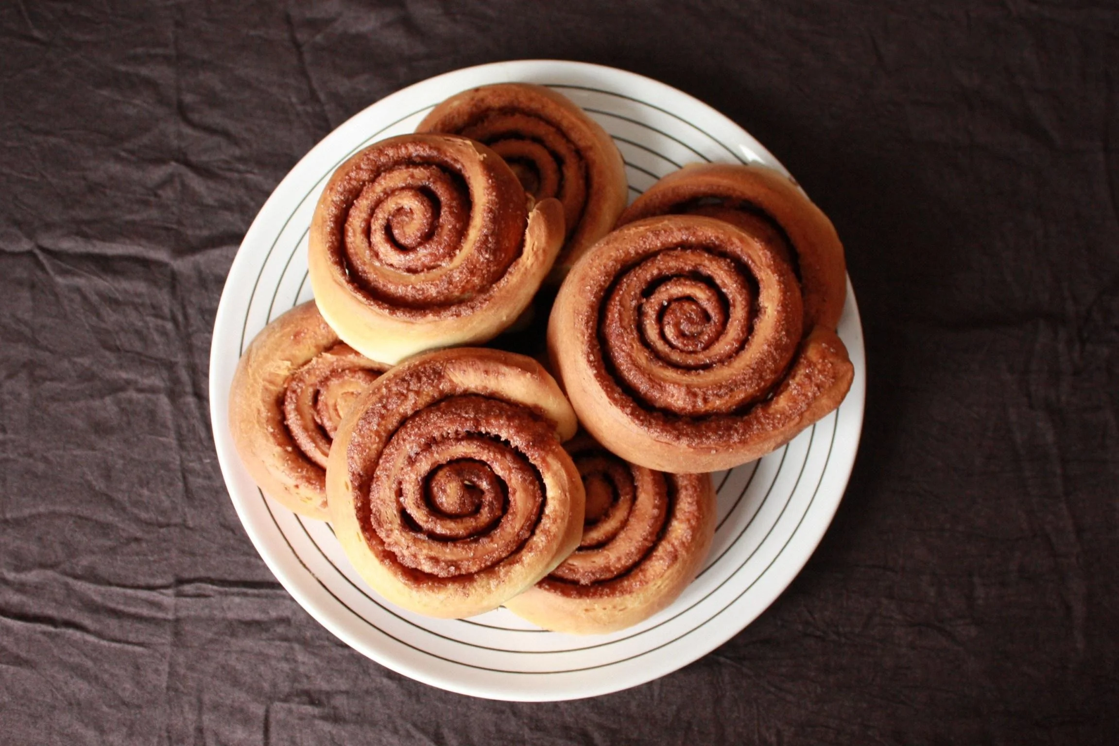 ШАГ 2 Поделить тесто на две части. Растопить оставшиеся 50 грамм сливочного масла. Раскатать каждую часть теста в пласт толщиной 5 мм и смазать небольшим количеством растопленного масла. Посыпать оставшимся сахаром и корицей. Скатать рулетом и разрезать на кусочки длиной в 1 см. Положить булочки в формы для кексов и дать им «отдохнуть» в течение получаса.
