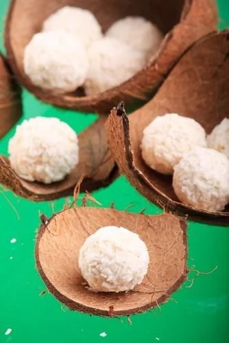 Трюфели из рикотты в белом шоколаде и кокосовой стружке с целым миндалем