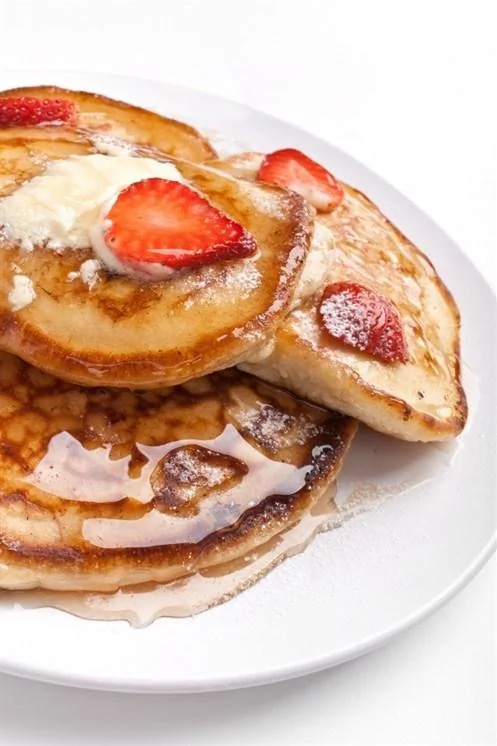 Оладьи по американски с клубникой и бананами