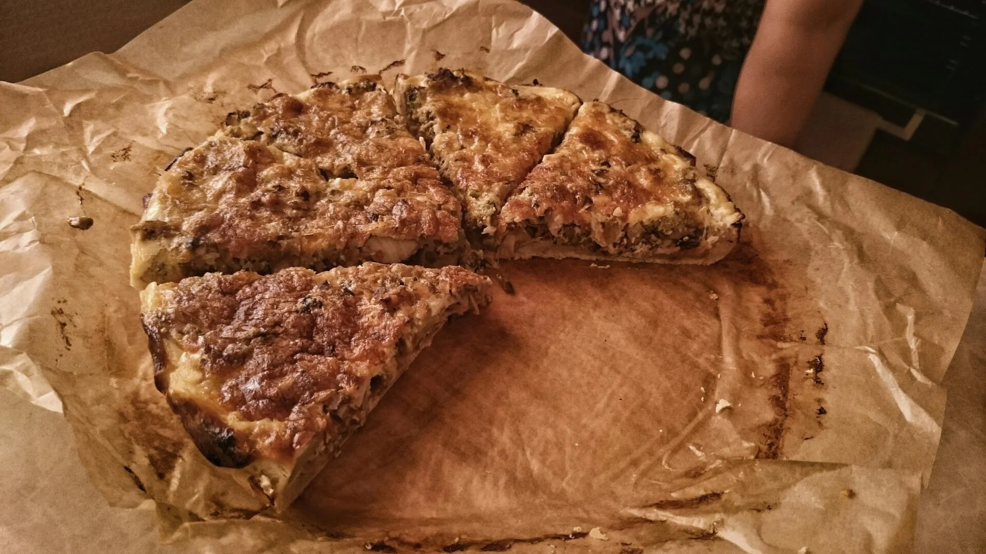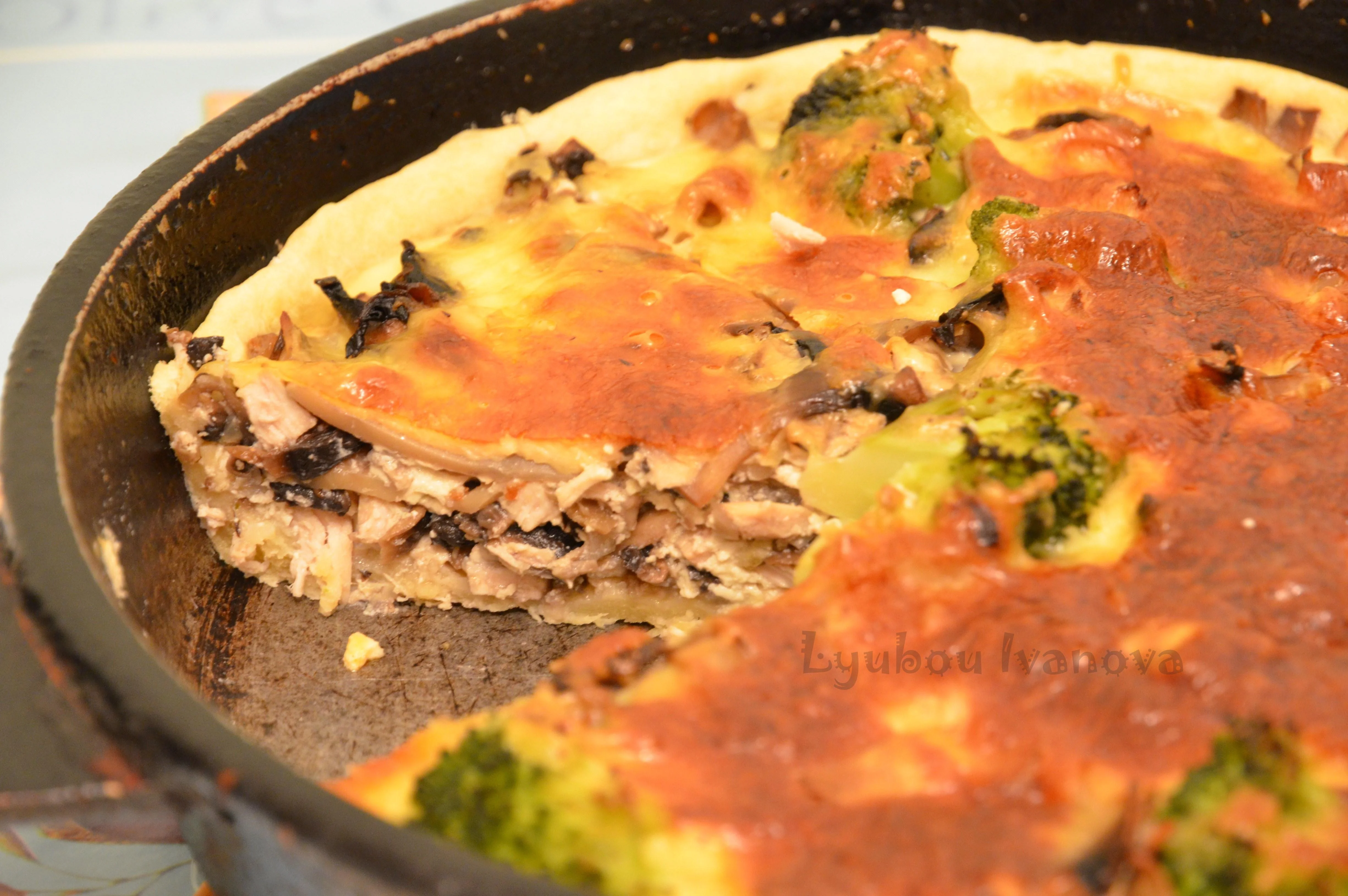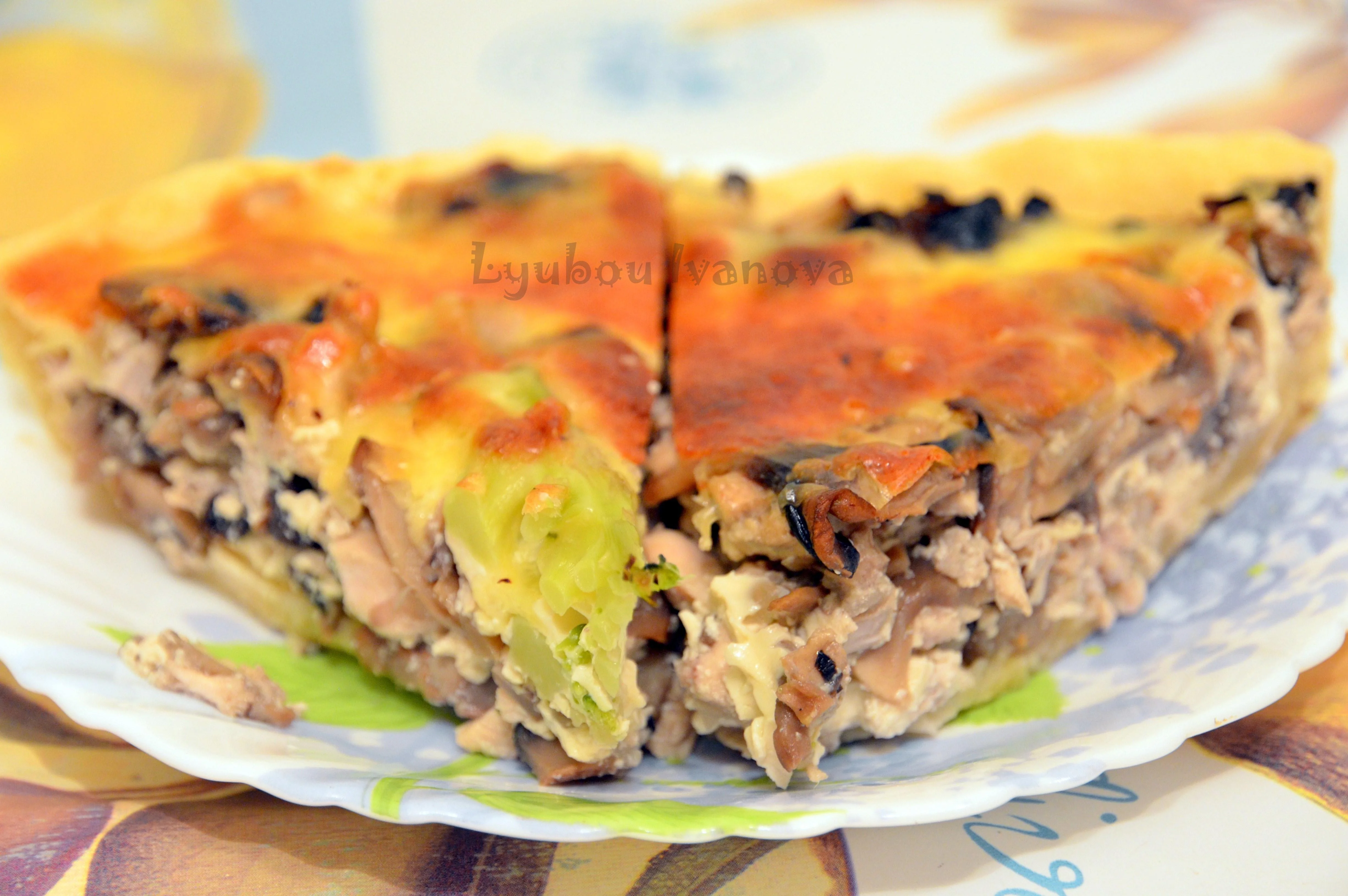 Пирог с курицей, грибами и брокколи
