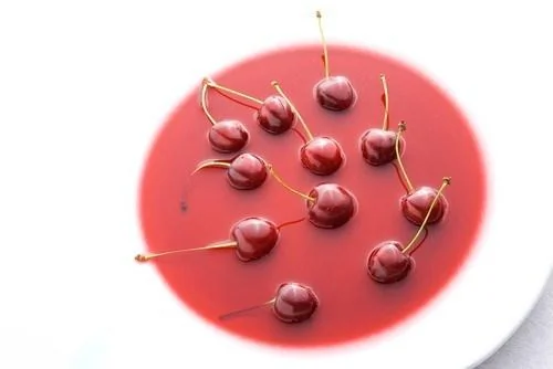 ШАГ 5 Процедите суп, добавьте бренди и подавайте, украсив целыми вишнями.