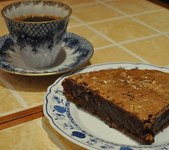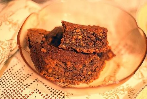 ШАГ 3 Смешайте муку с измельченными грецкими орехами, добавьте в смесь шоколада и яиц.