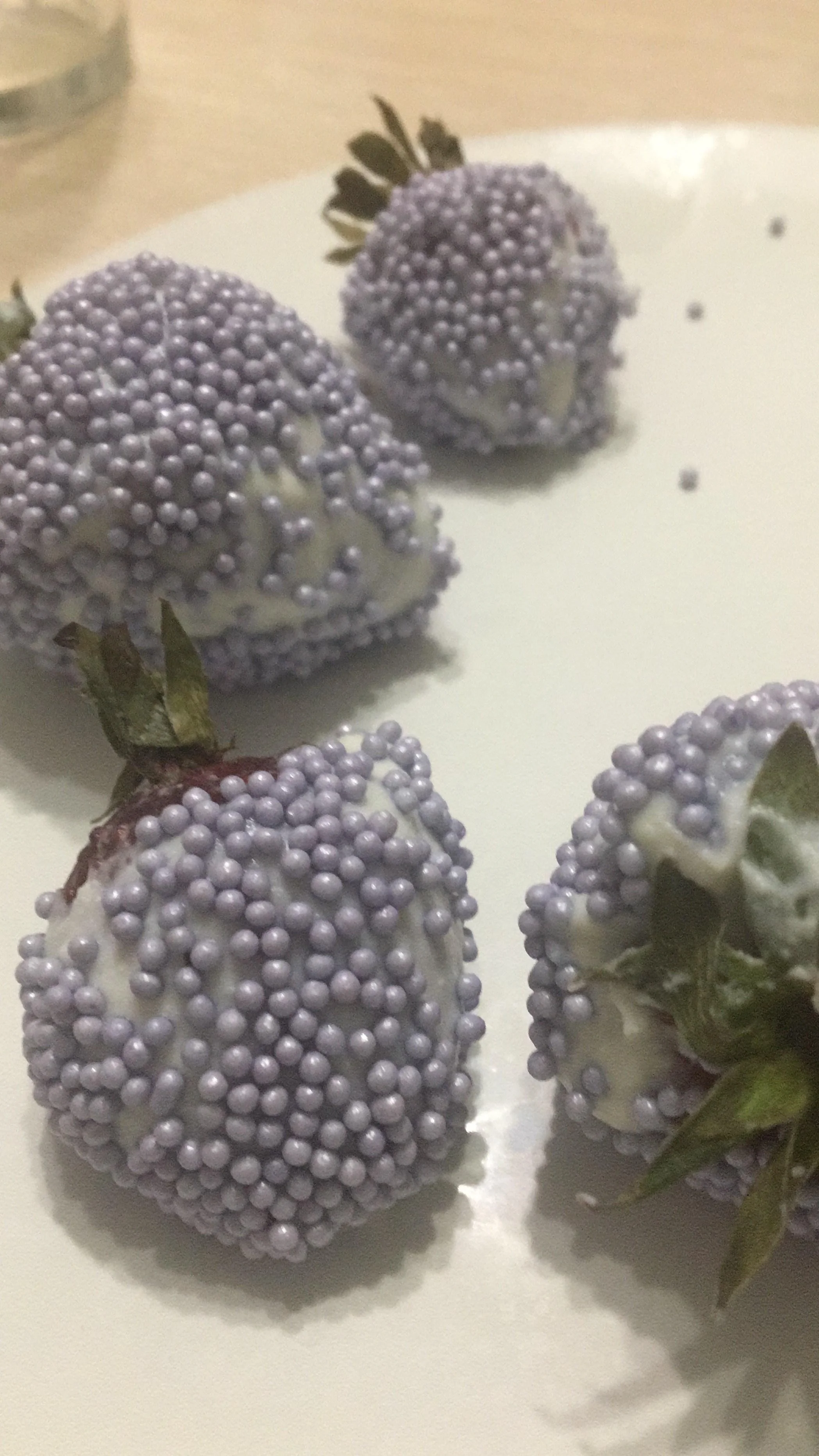 ШАГ 4 Держа ягоды за хвостики, окунайте в крем, затем обваливайте в кондитерских украшениях.