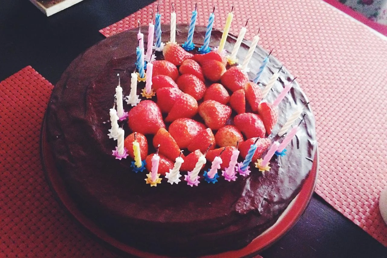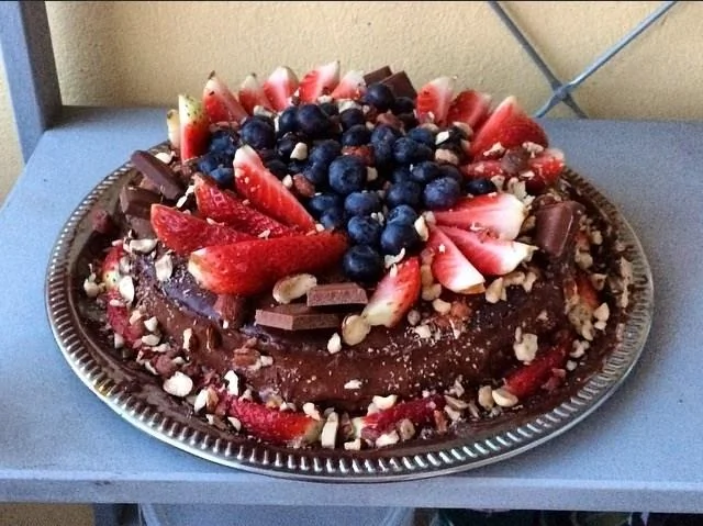 ШАГ 3 Готовим ганаш: 170 мл сливок нагреваем на водяной бане, но не кипятим. Как только они будут близки к закипанию, добавляем в них поломанный на маленькие дольки шоколад, и, постоянно помешивая, ждем превращения в эмульсию, т.е. в совершенно гладкую и глянцевую субстанцию. Готовым ганашем обмазываем весь торт, и помещаем его в холодильник как минимум на час, максимум — на ночь.