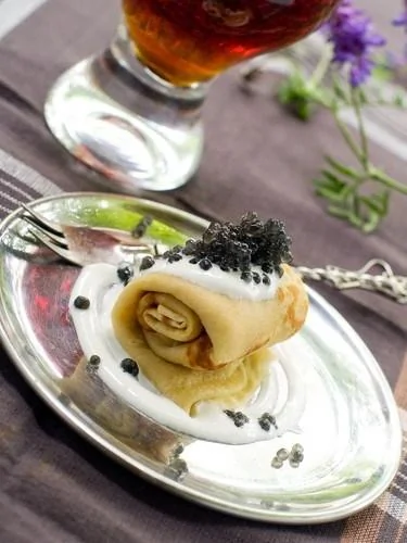 ШАГ 3 Подавайте со сметаной и черной икрой.