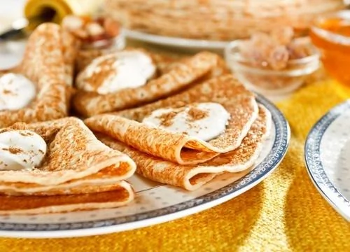 Тонкие блинчики из каштановой муки с рикоттой и медом