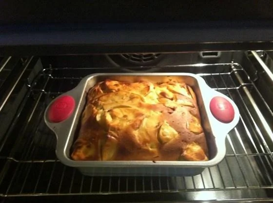 ШАГ 3 Яблоки и груши нарезать на четвертинки и тоненько нашинковать. Выложить их в форму (ее можно предварительно смазать маслом растительным) и залить тестом. Можно перемешать тесто и начинку, чтобы тесто равномернее распределилось между фруктами.