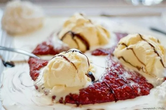 ШАГ 4 Тем временем, в небольшой миске смешайте малину и оставшийся сахар. Оставьте на 15 минут, пока не выделится сок. Полейте замороженный йогурт и подавайте.