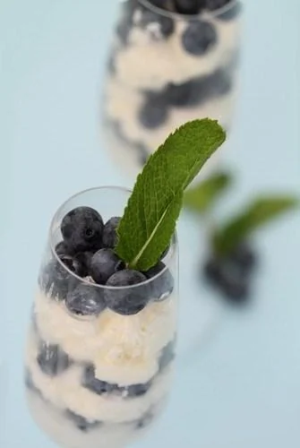 ШАГ 2 Выложите сырный крем в креманки, сверху насыпьте чернику.
