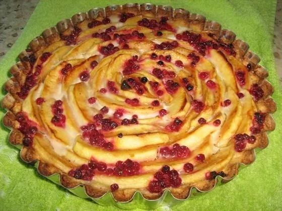 ШАГ 7 Яблоки выложить розочкой и сверху посыпать замороженной брусникой, хотя подойдут и другие ягоды, например, черная смородина.