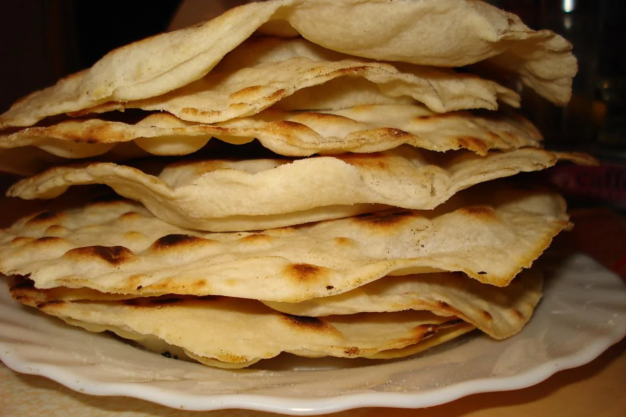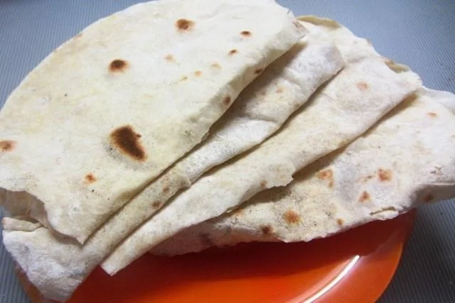 ШАГ 5 Готовые тортильи выкладывать на тарелку, пересыпая мукой, чтобы не слиплись.