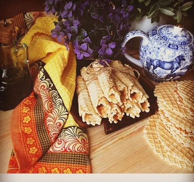 ШАГ 2 Горячие вафли свернуть в трубочки.
