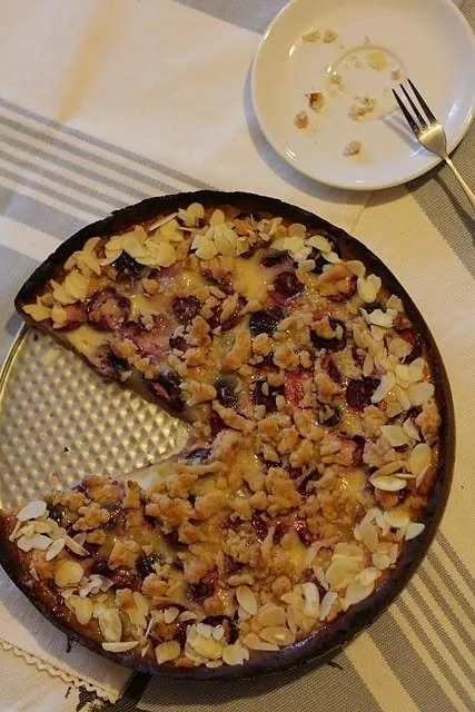 ШАГ 6 Печем еще около 30–40 минут. Когда все будет готово лучше всего посыпать миндальными лепестками края пирога.