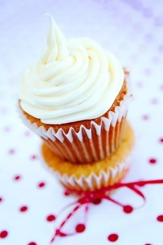 ШАГ 6 Тем временем, сделайте сырную глазурь (смотрите примечание) и толстым слоем покройте сверху капкейки.