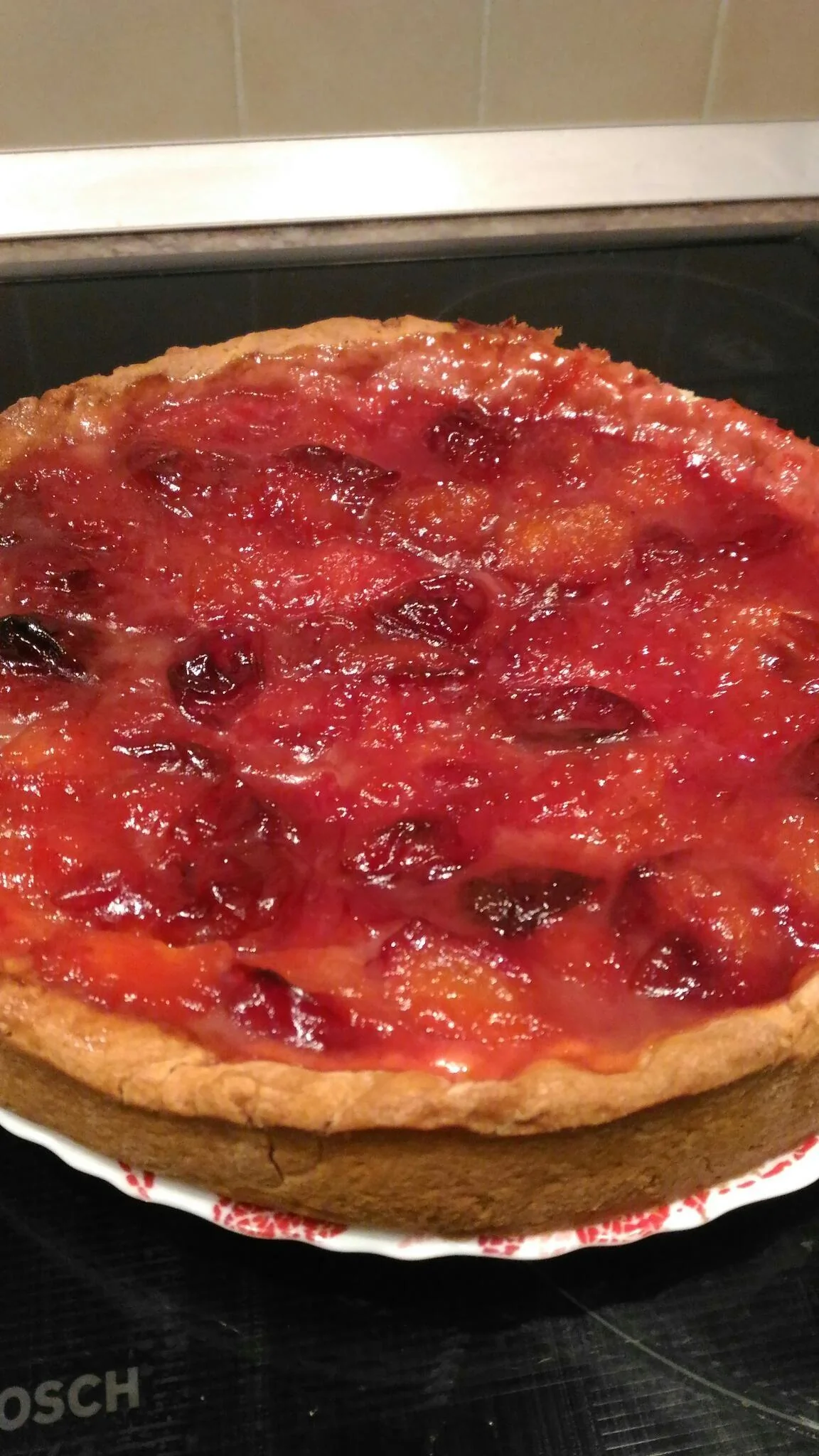 ШАГ 5 Вынуть пирог из духовки, сразу отсоединить борт формы и оставить остывать на 1,5 часа. Важно дать пирогу хорошо остыть, чтобы застыла начинка, иначе при разрезании потечет большое количество сока.